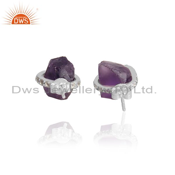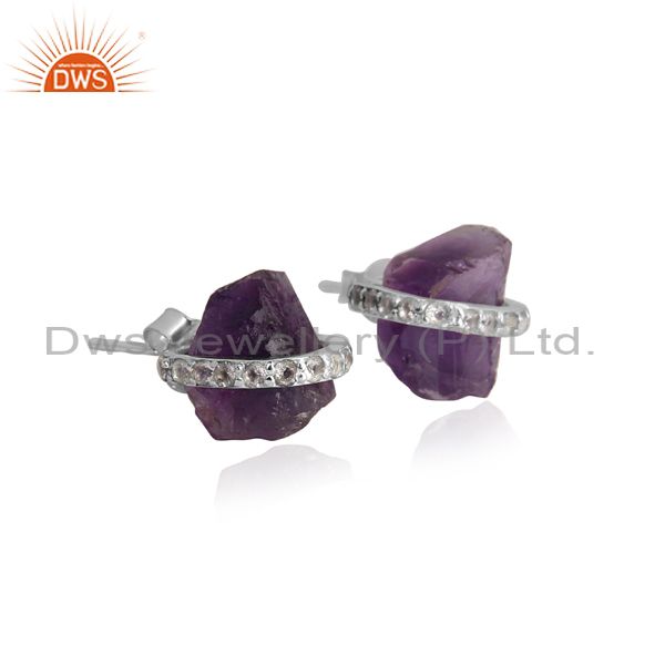White Topaz And Amethyst Set Fine Sterling Silver Earrings