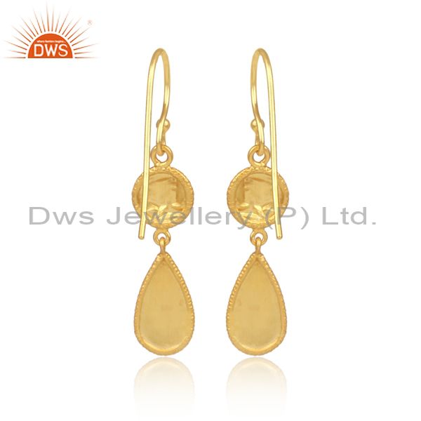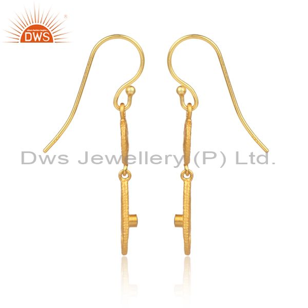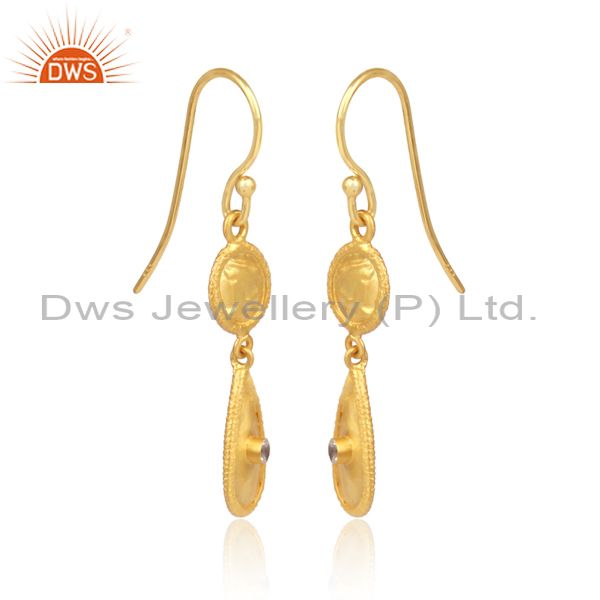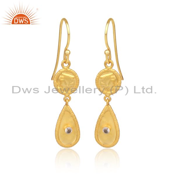 White Topaz Gold On Silver Handmade Ethnic Earwire Earrings