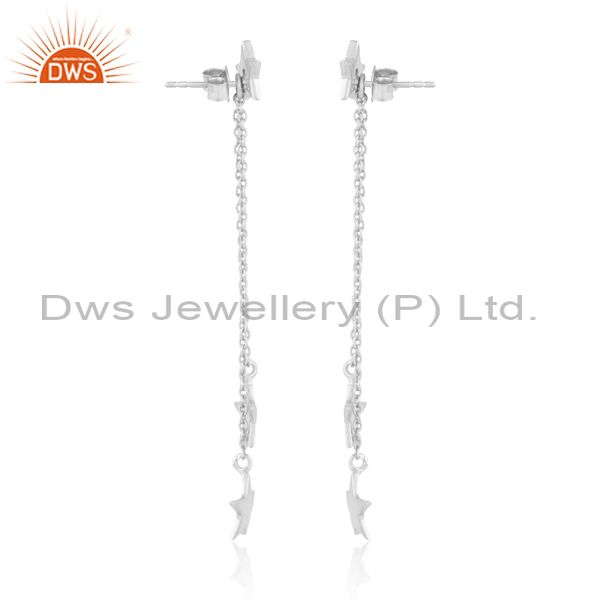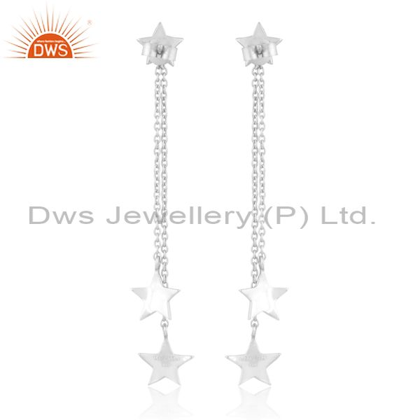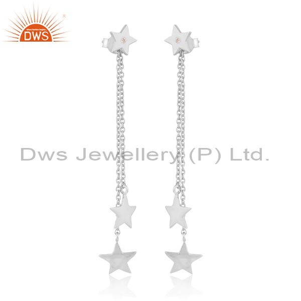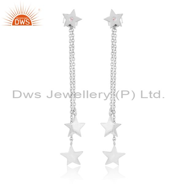 White Topaz Set Fine Sterling Silver Long Drop Star Earrings