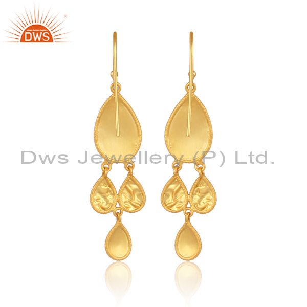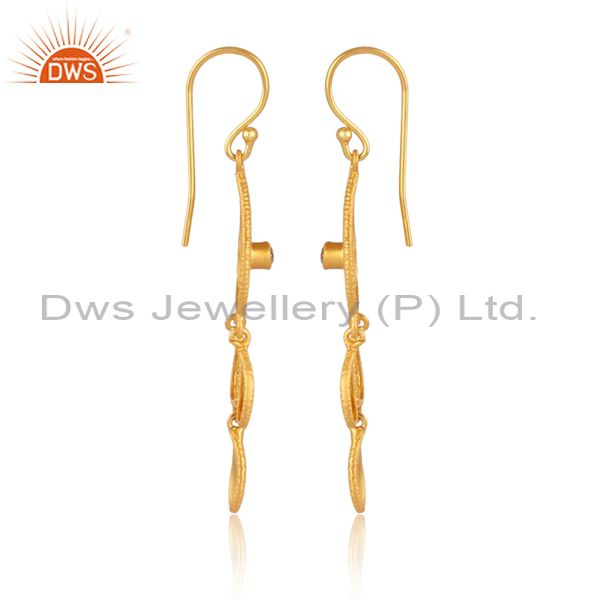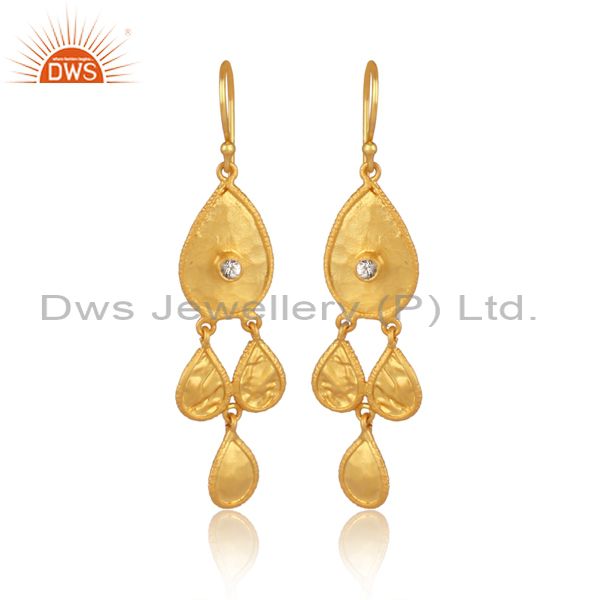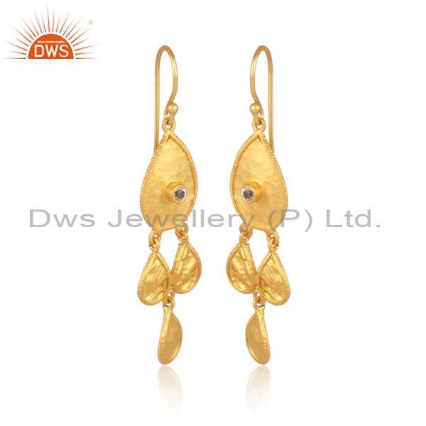 White Topaz Set Gold On 925 Sterling Silver Ethnic Earrings