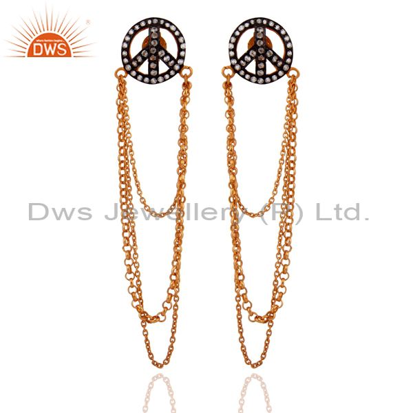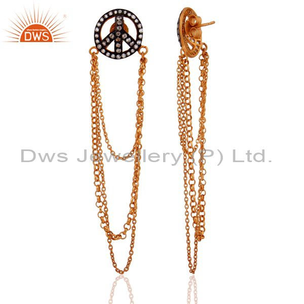 White Zircon 18K Gold Plated 925 Sterling Silver Chain Peace Sign Dangle Earring