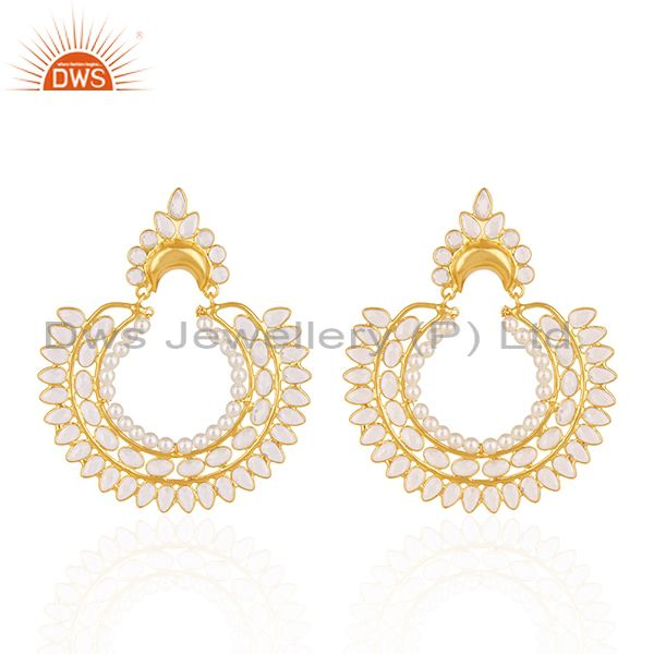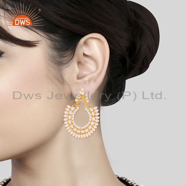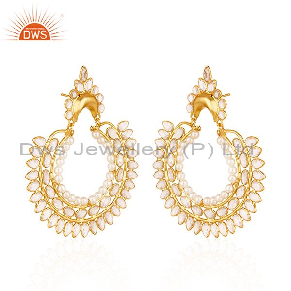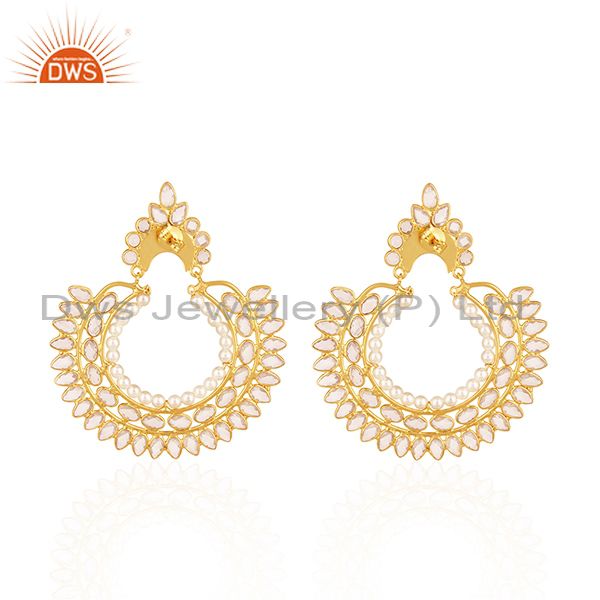 White Zircon and Pearl Gemstone Gold Plated 925 Silver Traditional Earrings