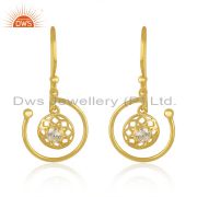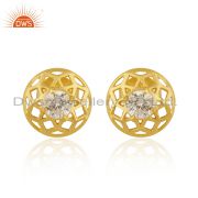 White Zircon Designer 925 Silver 14K Yellow Gold Plated Stud Earring Manufacture