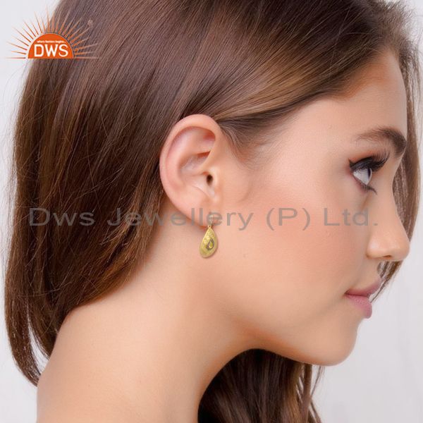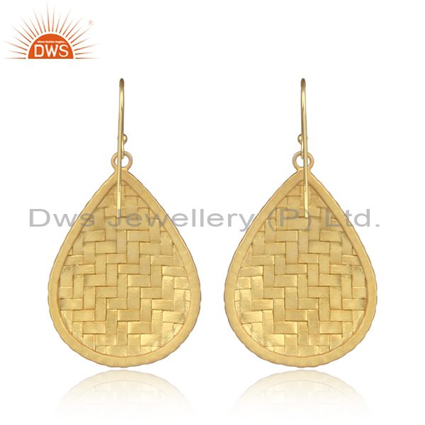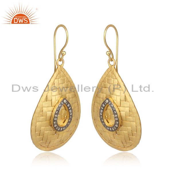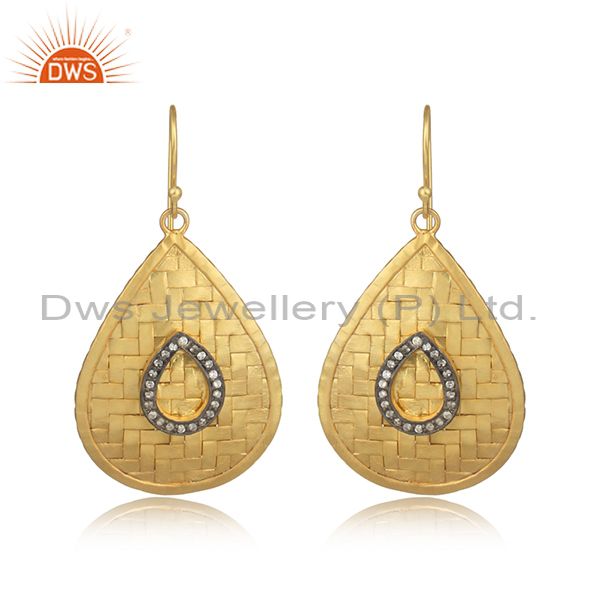 White Zircon Gold Plated 925 Sterling Silver Weave Teardrop Dangle Earrings