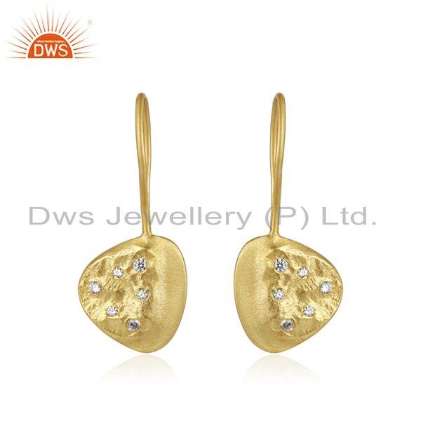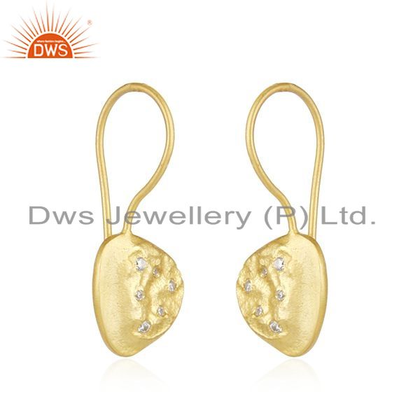 White Zircon Handmade Yellow Gold Plated 925 Sterling Silver Earrings