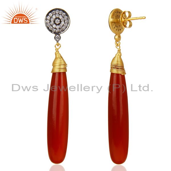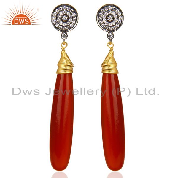 White Zircon Red Onyx Gemstone 925 Silver Gold Plated Graceful Look Earrings