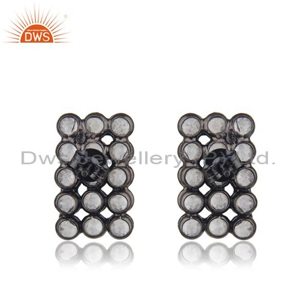 White Zircon Sterling Silver Black Stud Earrings Jewelry Manufacturer India