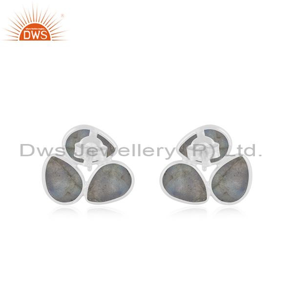 Wholesale Fine Silver Labradorite Stud Earrings Jewelry