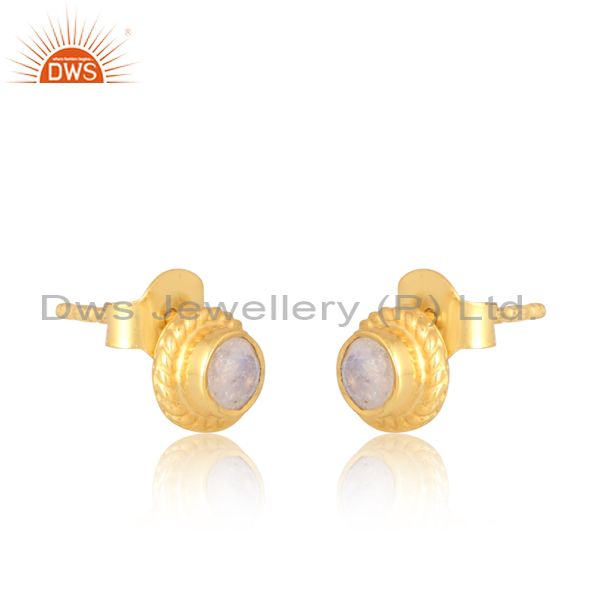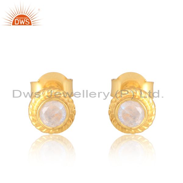 Women S Stud In Rainbow Moonstone Round Cut Style Silver