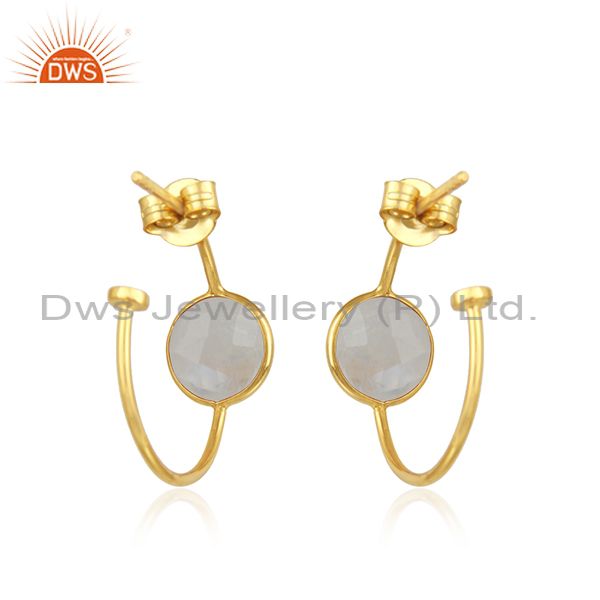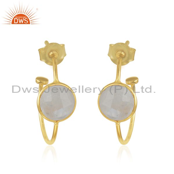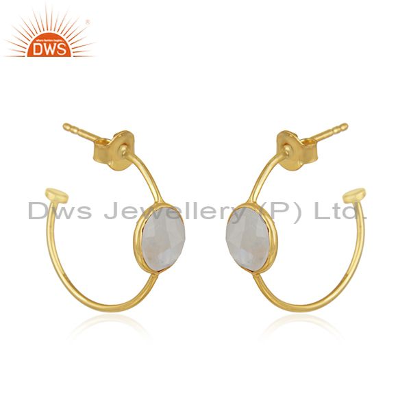 Womens 18k Gold Plated Designer 925 Silver Rainbow Moonstone Earrings