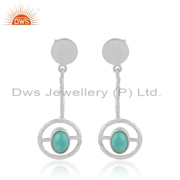 Womens 925 Sterling Fine Silver Arizona Turquoise Gemstone Earrings
