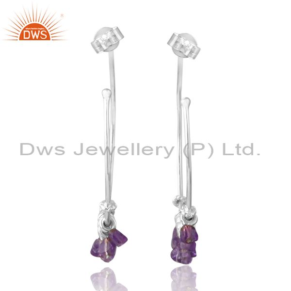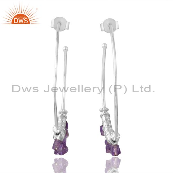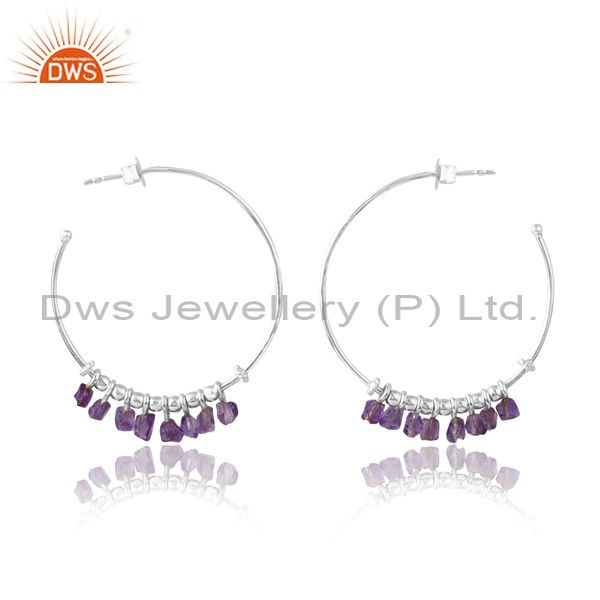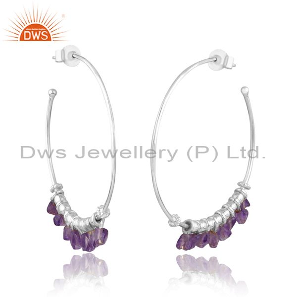 Womens Loop Amethyst Unshaped Silver Earrings Silver Girls