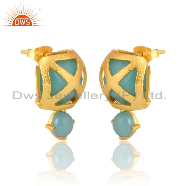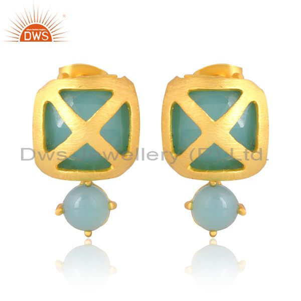 X Mark Drop Silver Wedding Stud In Aqua Chalcedony Women