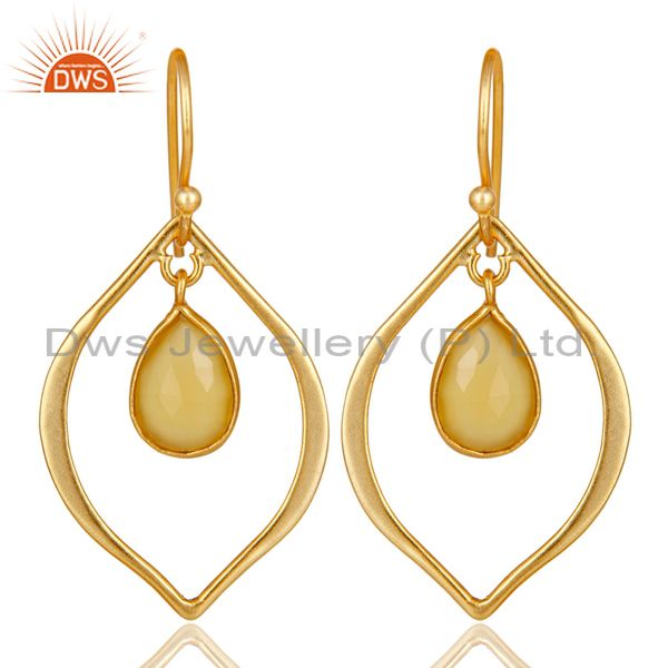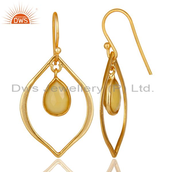 Yellow Chalcedony 18K Gold Plated Art Deco Sterling Silver Earring