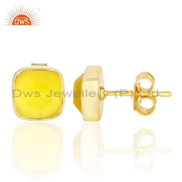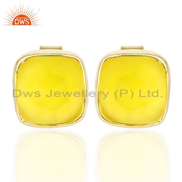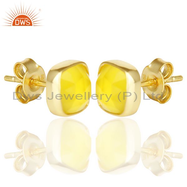 Yellow Chalcedony Cushion Rose Cut Small 14 K Gold Plated Stud Earring
