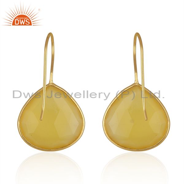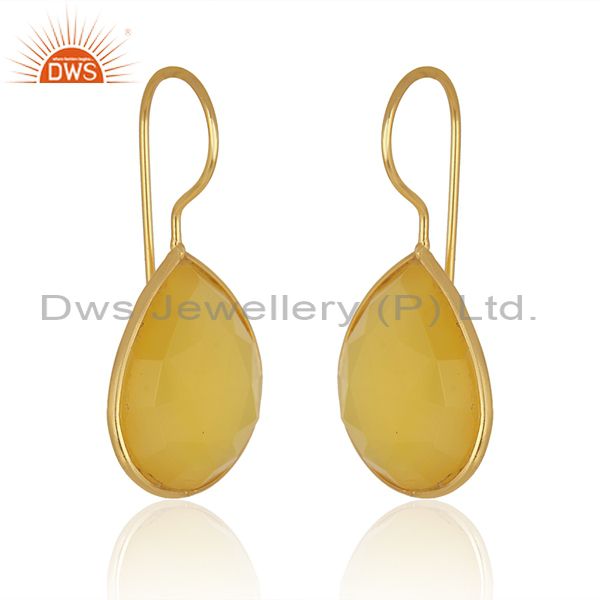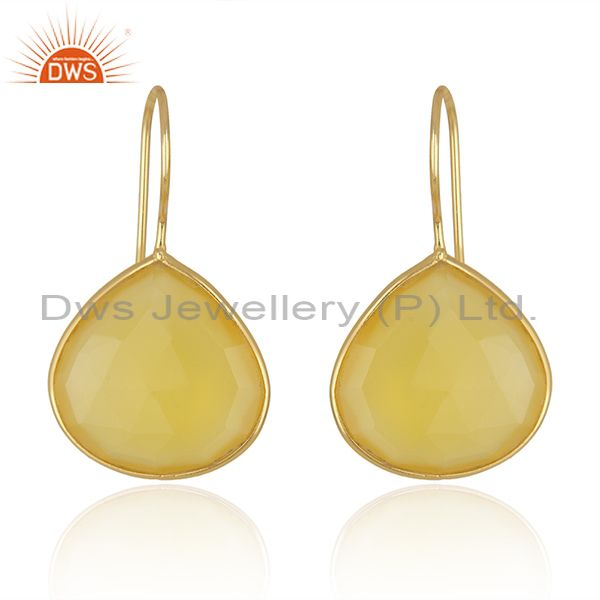 Yellow Chalcedony Gemstone Gold Plated 925 Silver Earrings Supplier