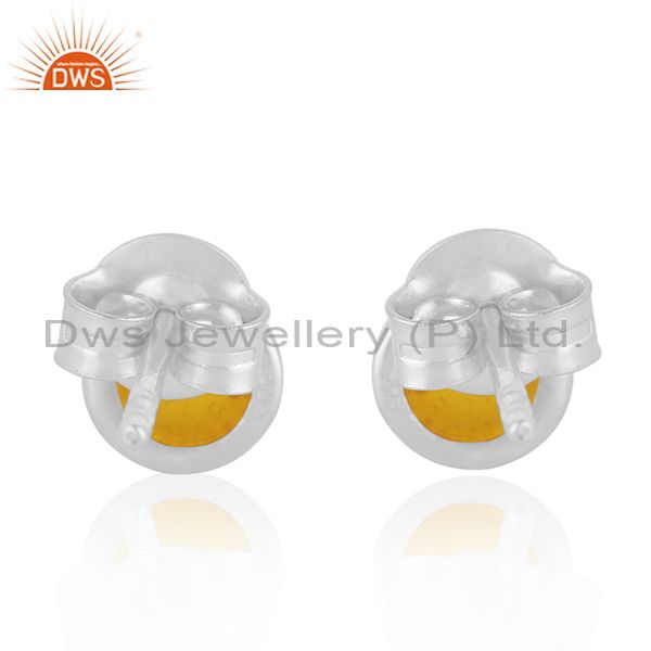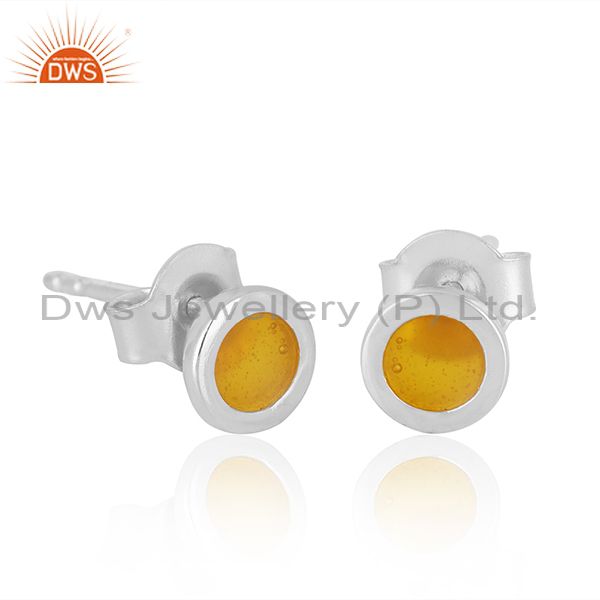 Yellow Enamel 925 Sterling Silver Stud Earrings For Girls Jewelry