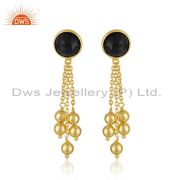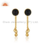 Yellow Gold Plated 925 Silver Black Onyx Gemstone Earring Wholesaler India