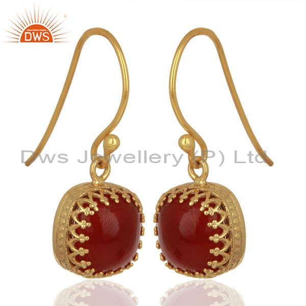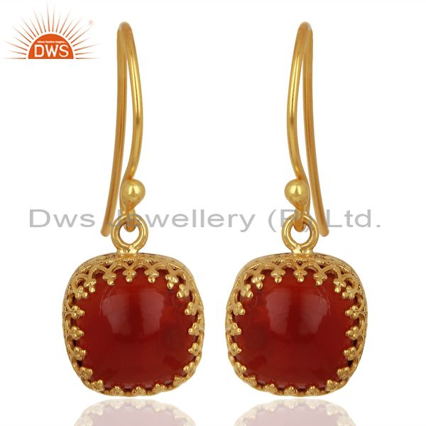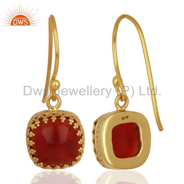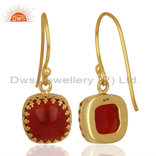 Yellow Gold Plated 925 Silver Carnelian Gemstone Designer Earrings