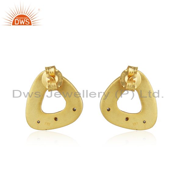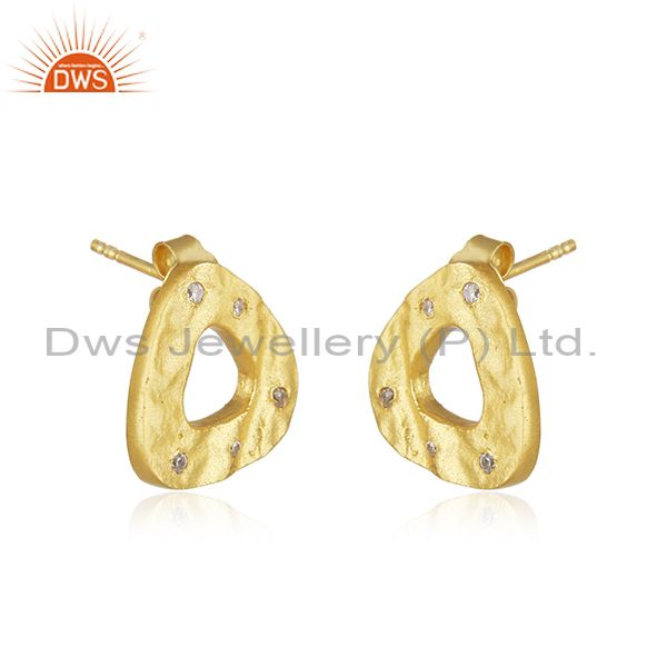 Yellow Gold Plated 925 Sterling Silver White Zircon Stud Earrings