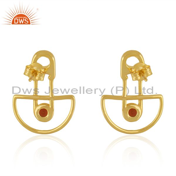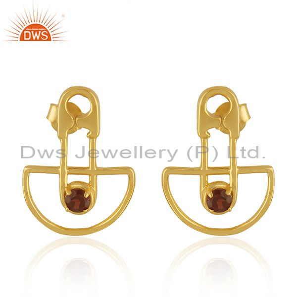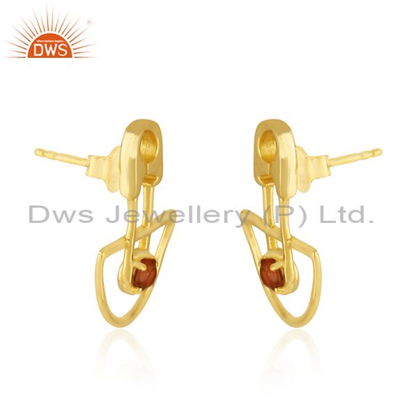 Yellow Gold Plated Customized Design 925 Silver Garnet Stone Stud Earring