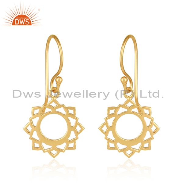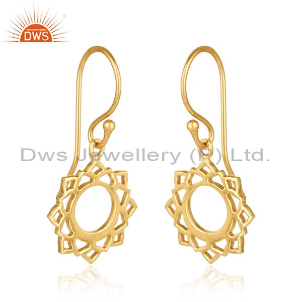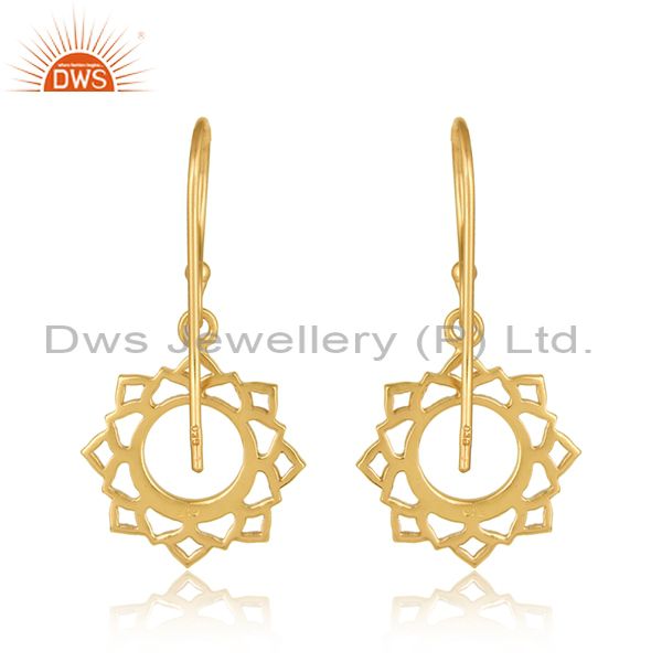 Yellow Gold Plated Designer Vishuddha Chakra Plain Silver Earrings
