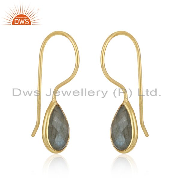 Yellow Gold Plated Silver Labradorite Gemstone Hook Earrings Jewelry