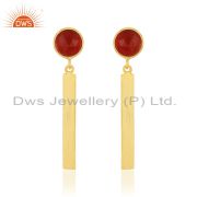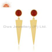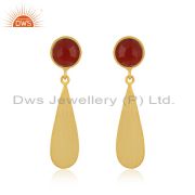 Yellow Gold Plated Sterling Silver Red Onyx Gemstone Earrings Manufacturer India