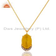 Yellow Moonstone Gemstone And Cz Sterling Silver Stud Earrings With Gold Plated