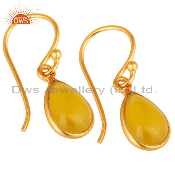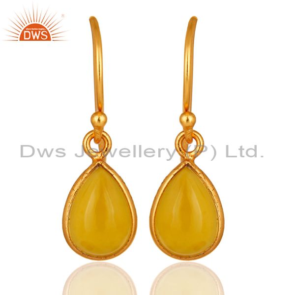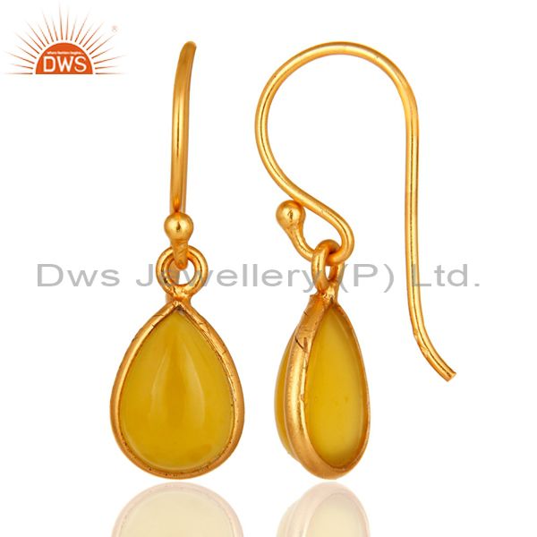 Yellow Moonstone Gold Plated Sterling Silver Bezel Set Gemstone Drop Earrings