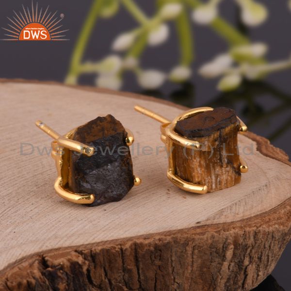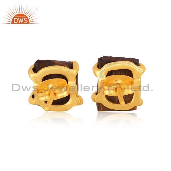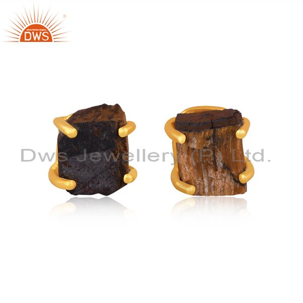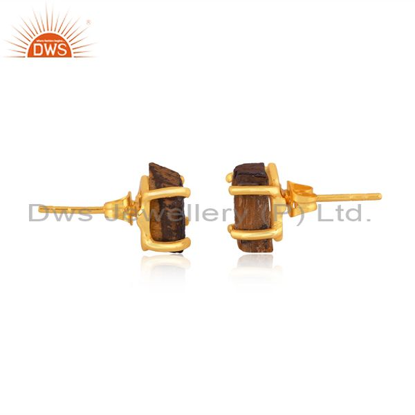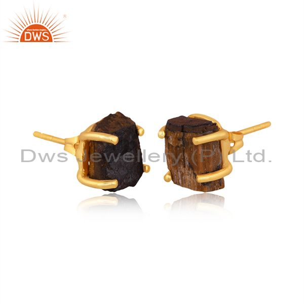 Yellow Tiger Eye Set 18K Gold On Brass Designer Earrings