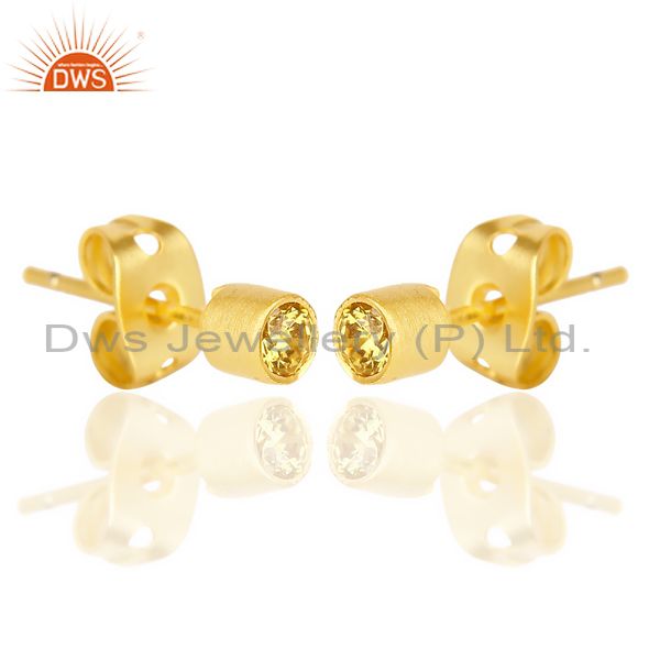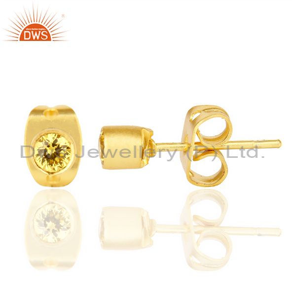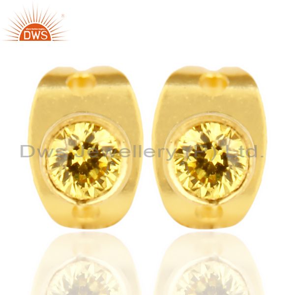Yellow Zircon Tiny 3Mm Post 14 K Gold Plated Fashion Earring,Quete Earring