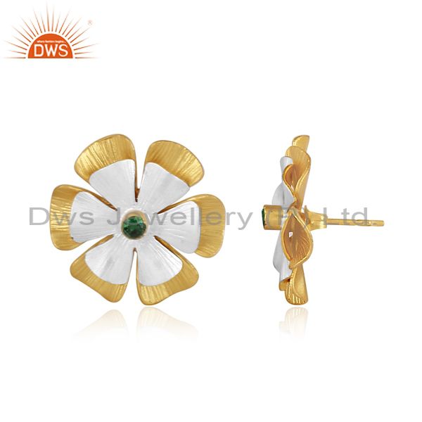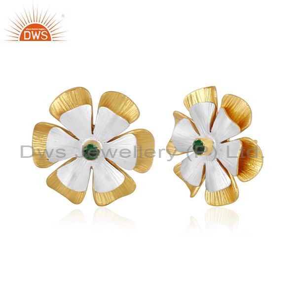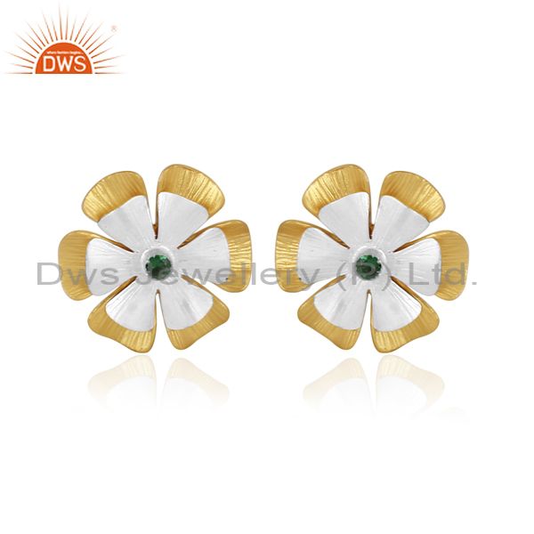 Zircon Green Fine And Brass Gold Floral Designer Earrings