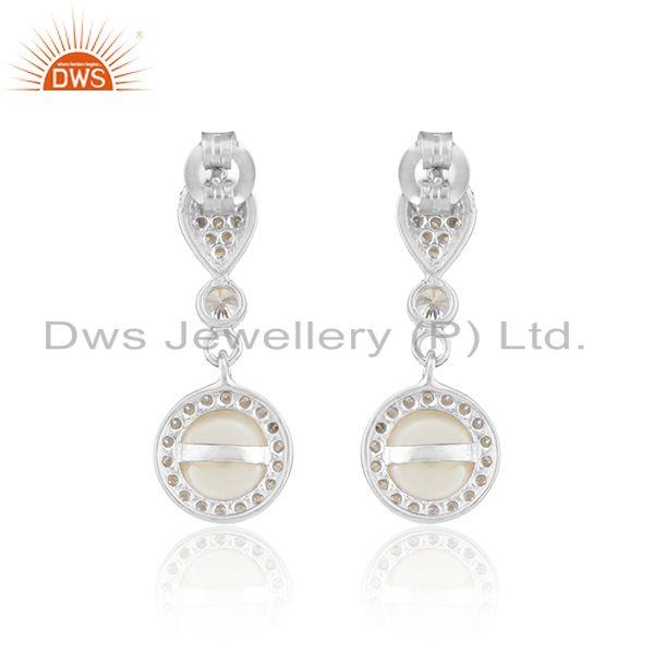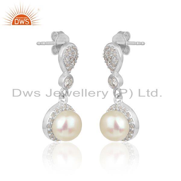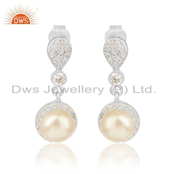 Zircon Pearl Gemstone Designer Silver Womens Earrings Jewelry