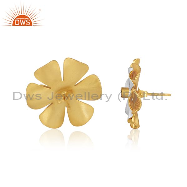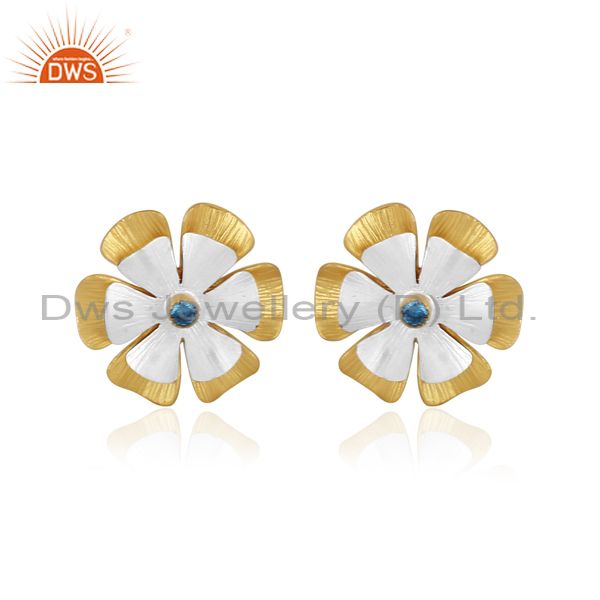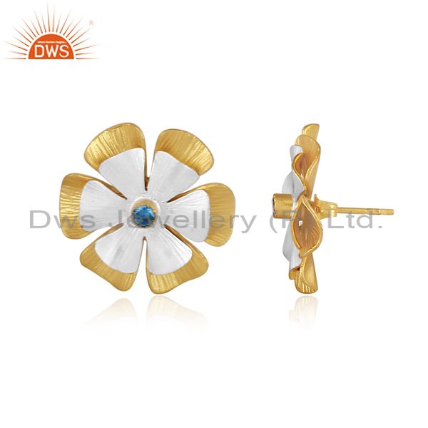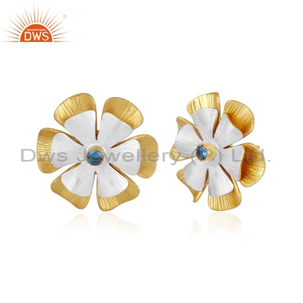 Zircon Swiss Blue Topaz Fine And Brass Gold Floral Earrings