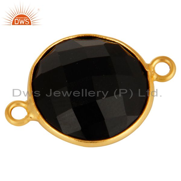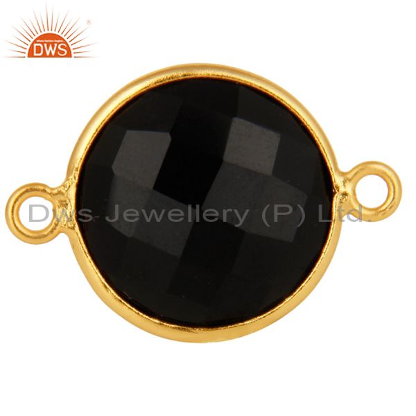 15MM Black Onyx Faceted Gemstone Sterling Silver Connector With Gold Plated