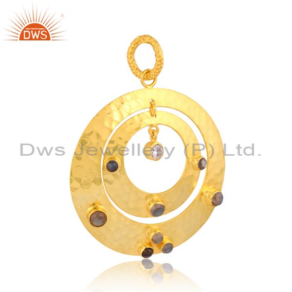 18K Gold Brass Jewelry Findings With Labradorite & Zirconia