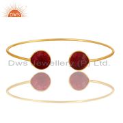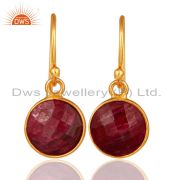 18K Gold On Sterling Silver Bezel-Set Dyed Ruby 10Mm Round Connectors Jewelry