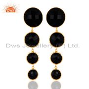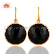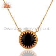 18K Gold Plated Silver Black Onyx Gemstone Bezel Set Gemstone Connector