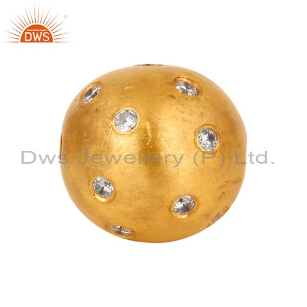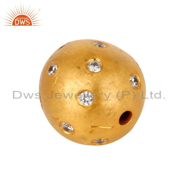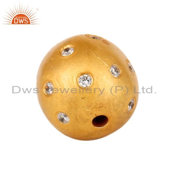 18K Gold-Plated Sterling Silver High Polished White Cubic Zirconia Beads Jewelry