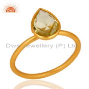 18K Gold Plated Sterling Silver Lemon Topaz Pear Gemstone Connector Jewelry