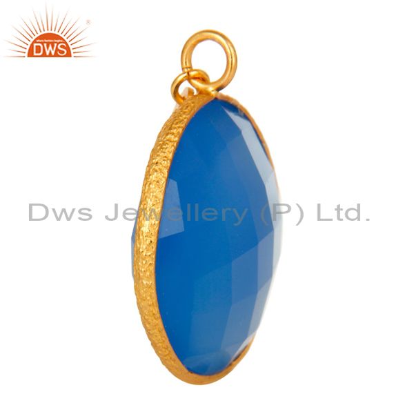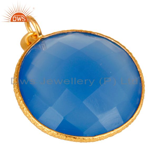 18K Yellow Gold Plated Sterling Silver Blue Chalcedony Bezel Set Charm Pendant