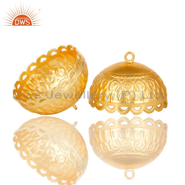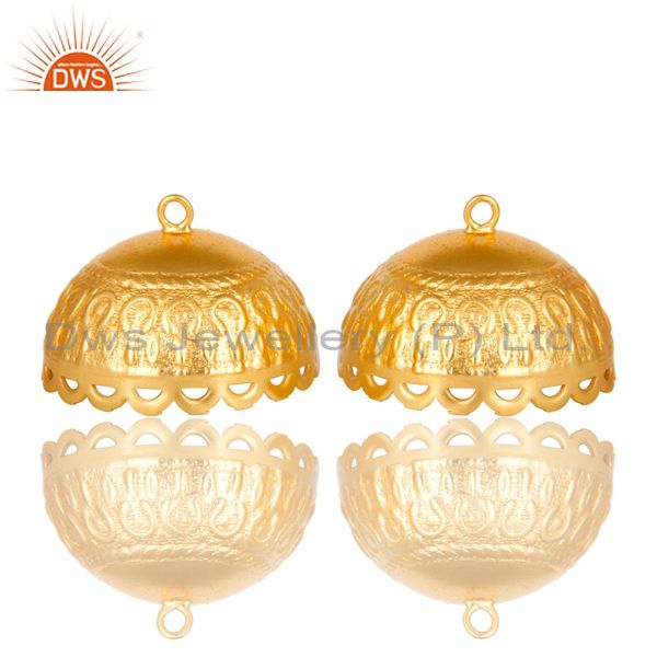 22K Yellow Gold Plated Brass Floral Engraved Traditional Jhumka Earrings