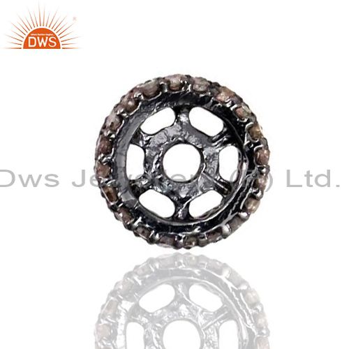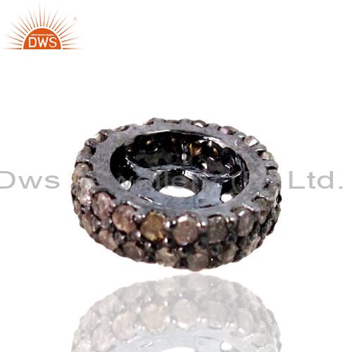 9mm Spacer 925 Silver Rondelles 0.43ct Pave Diamond Component Finding Jewelry