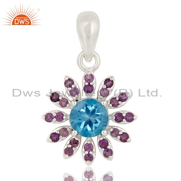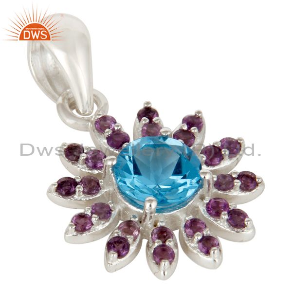 Amethyst And Blue Topaz Sterling Silver Designer Gemstone Pendant