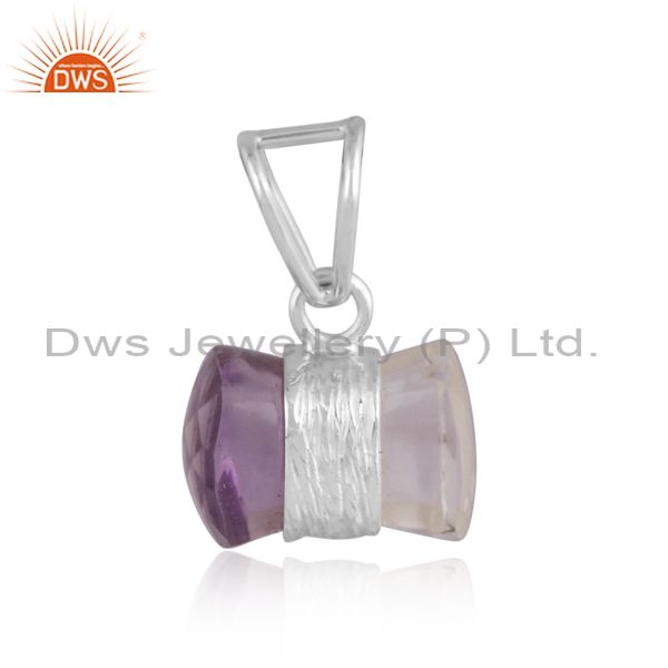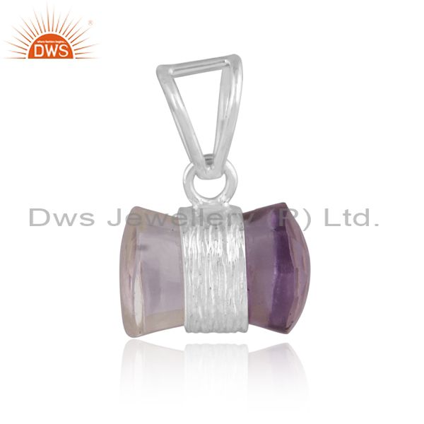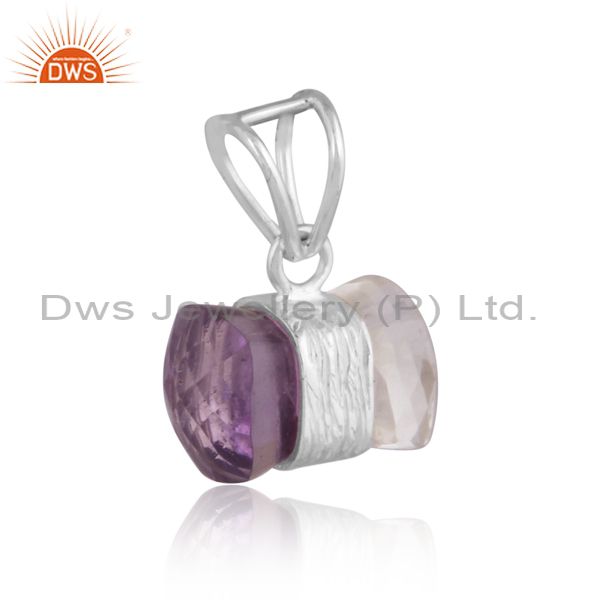Amethyst And Crystal Quartz Set Fine Silver Fancy Pendant