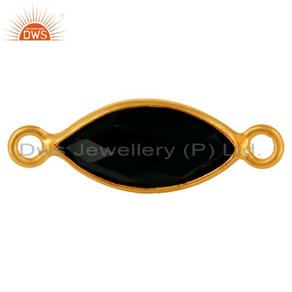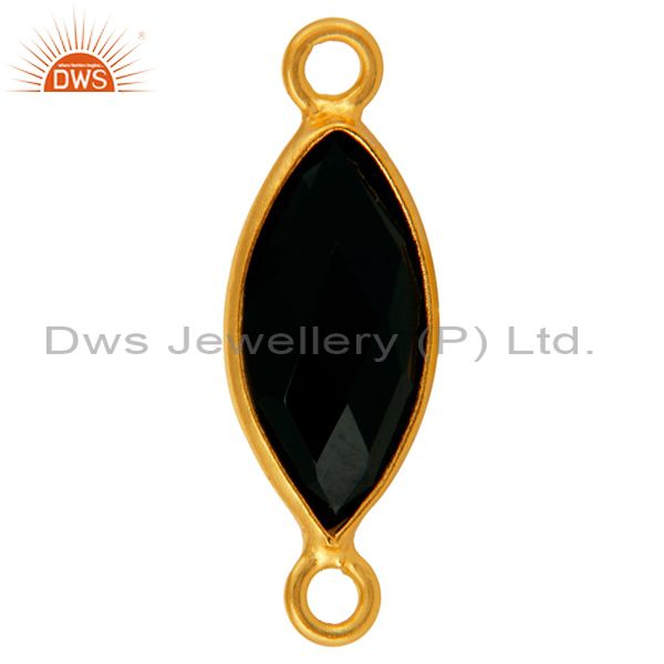 Black Onyx Marquoise Gemstone 18K Gold Plated Sterling Silver Connector Jewelry