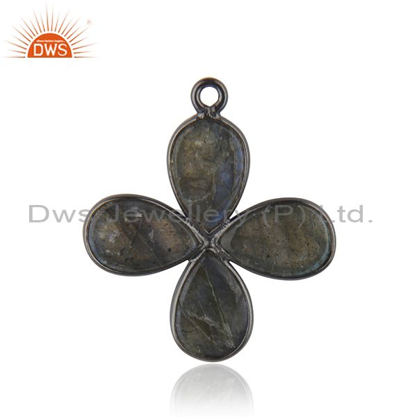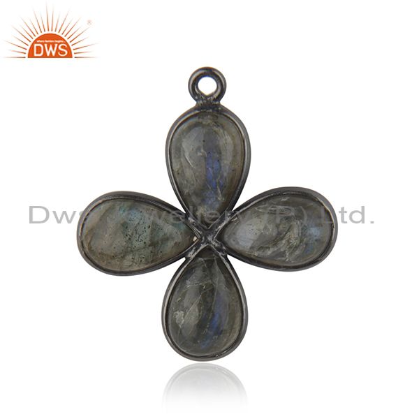Black Rhodium Plated Brass Fashion Labradorite Gemstone Findings