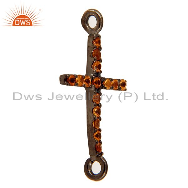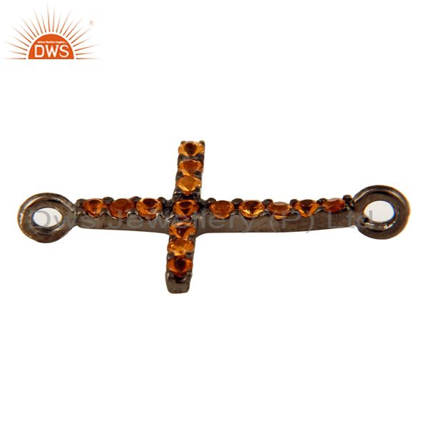 Black Rhodium Plated Sterling Silver Spessartite Garnet Cross Connector Charms