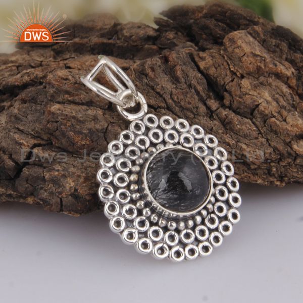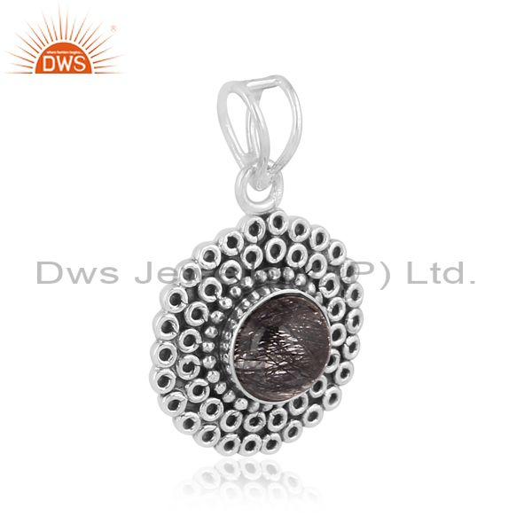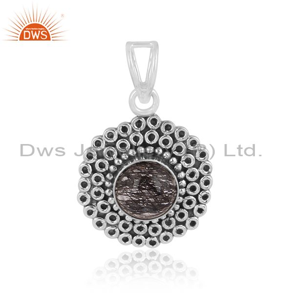 Black Rutile Set Oxidized Sterling Silver Handmade Pendant